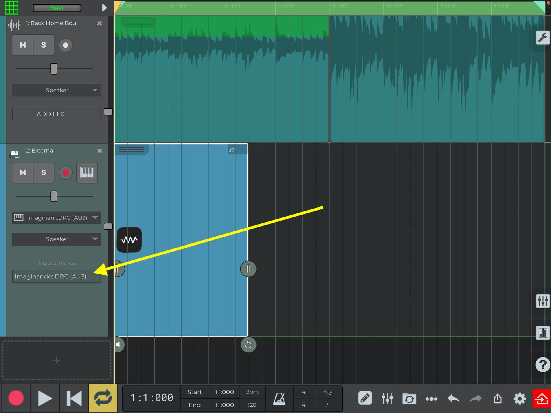 Use pinch to zoom to enlarge the tracks until you can read the instrument and effects list, then press AU3 as shown in the screenshot below.