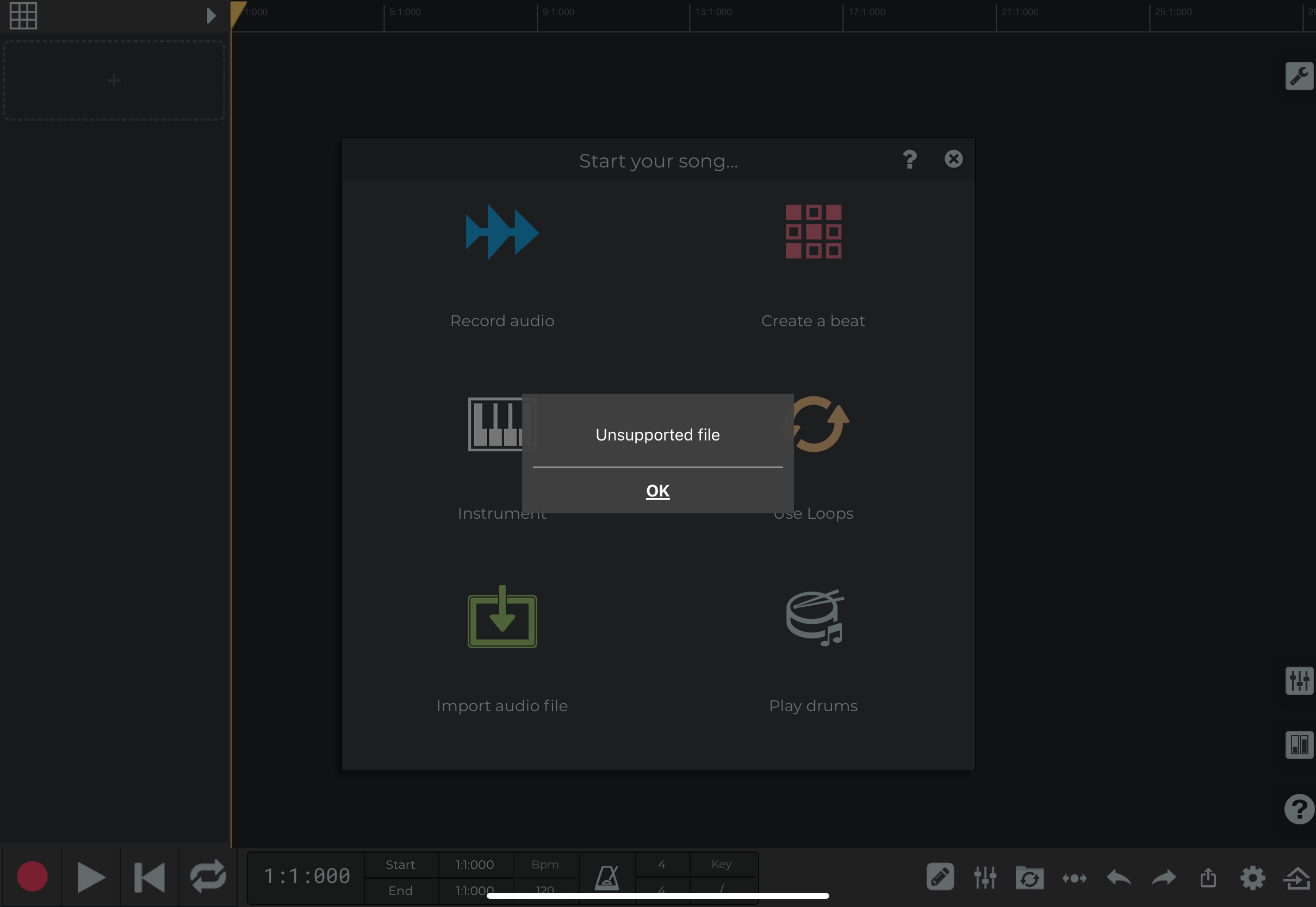 It appears this is a bug when loading a .dawproject file selecing ‘Share’ or ‘Open in’ from another app. We’ll fix this in the next update. It should work if you tap the home button in the lower right to open the Song Browser, then select the folder icon on the top right, select “Files”, then browse to the dawproject file location and open the file.