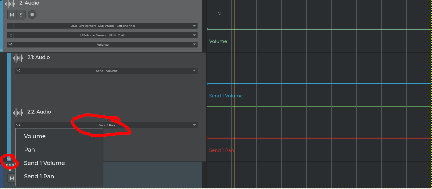 Problem is I can’t find any other selection but volume and pan there. I might have chosen a track that has no send thou, I’ll check on than when I’m on studio. (The earlier versions of the software opened the aux send volumes anyway.)